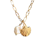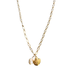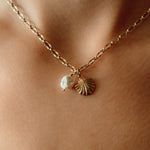 Named after the sea nymphs of Greek mythology, the Nerissa Necklace embodies the mystery and beauty of the ocean. A luminous keshi pearl, wire-wrapped into a graceful pendant, pairs with a gold vermeil scallop shell.