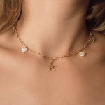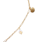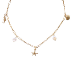 A thick, luxurious 14kt gold-filled long-and-short chain holds an elegant array of ocean-inspired treasures: