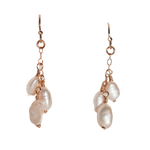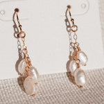 The Laguna Pearl Cluster Dangles showcase a trio of dainty freshwater pearls, delicately hanging in a small cluster from gold-filled chain.