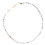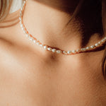 Made with freshwater pearls & gold-filled beads, these are adjustable 15-17”, making them wearable as a choker or a slightly looser collarbone-length necklace.