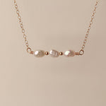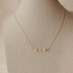 A customer favorite – this freshwater pearl trio is hand-beaded onto gold-filled wire and attached to a beautifully dainty gold-filled chain.  Mini gold-filled beads add an extra touch of sparkle to this beautiful piece. You may just find yourself wearing this necklace every day!