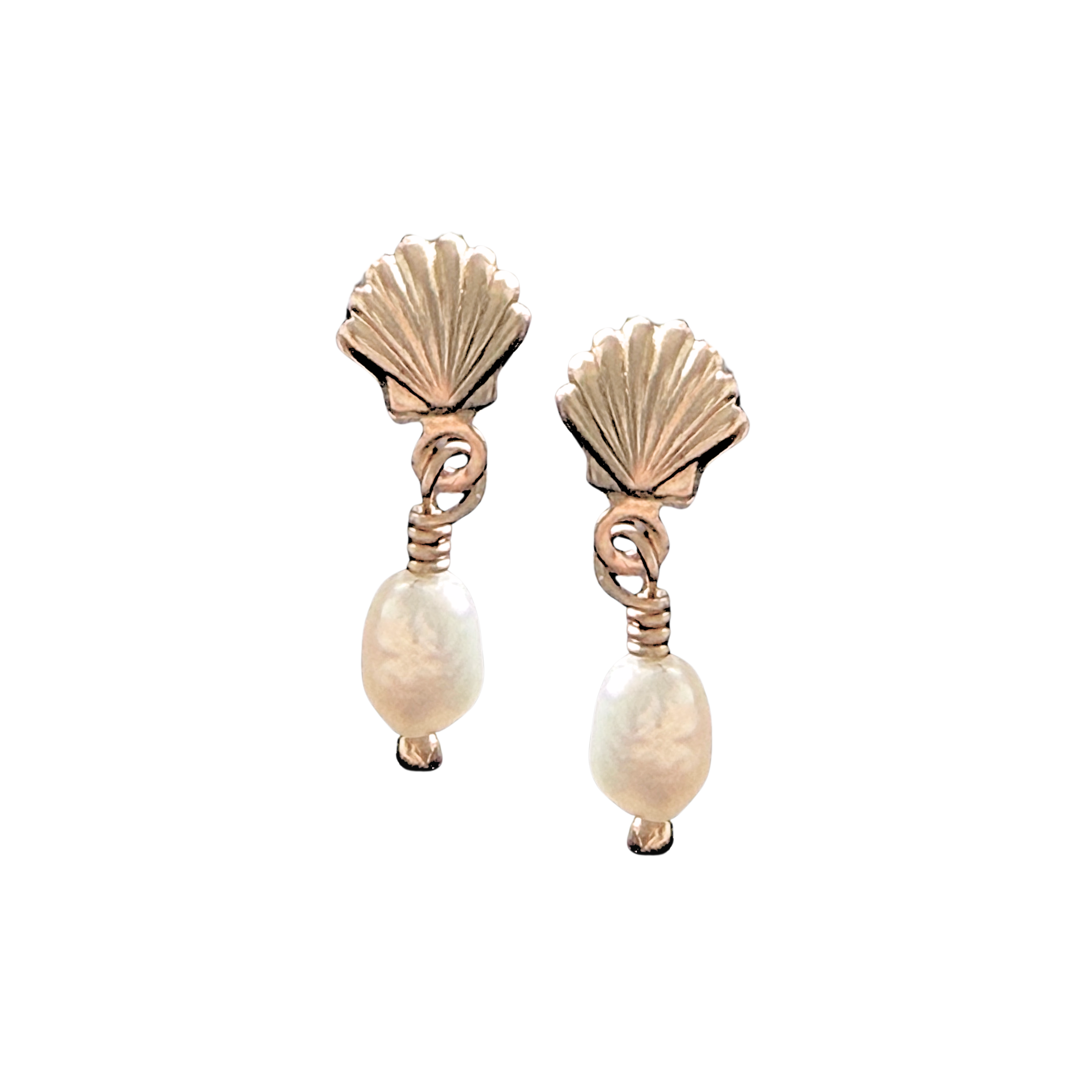 Playful yet elegant, these 14kt gold-filled studs feature a luminous mini freshwater pearl dangle; a design truly fit for a modern mermaid.