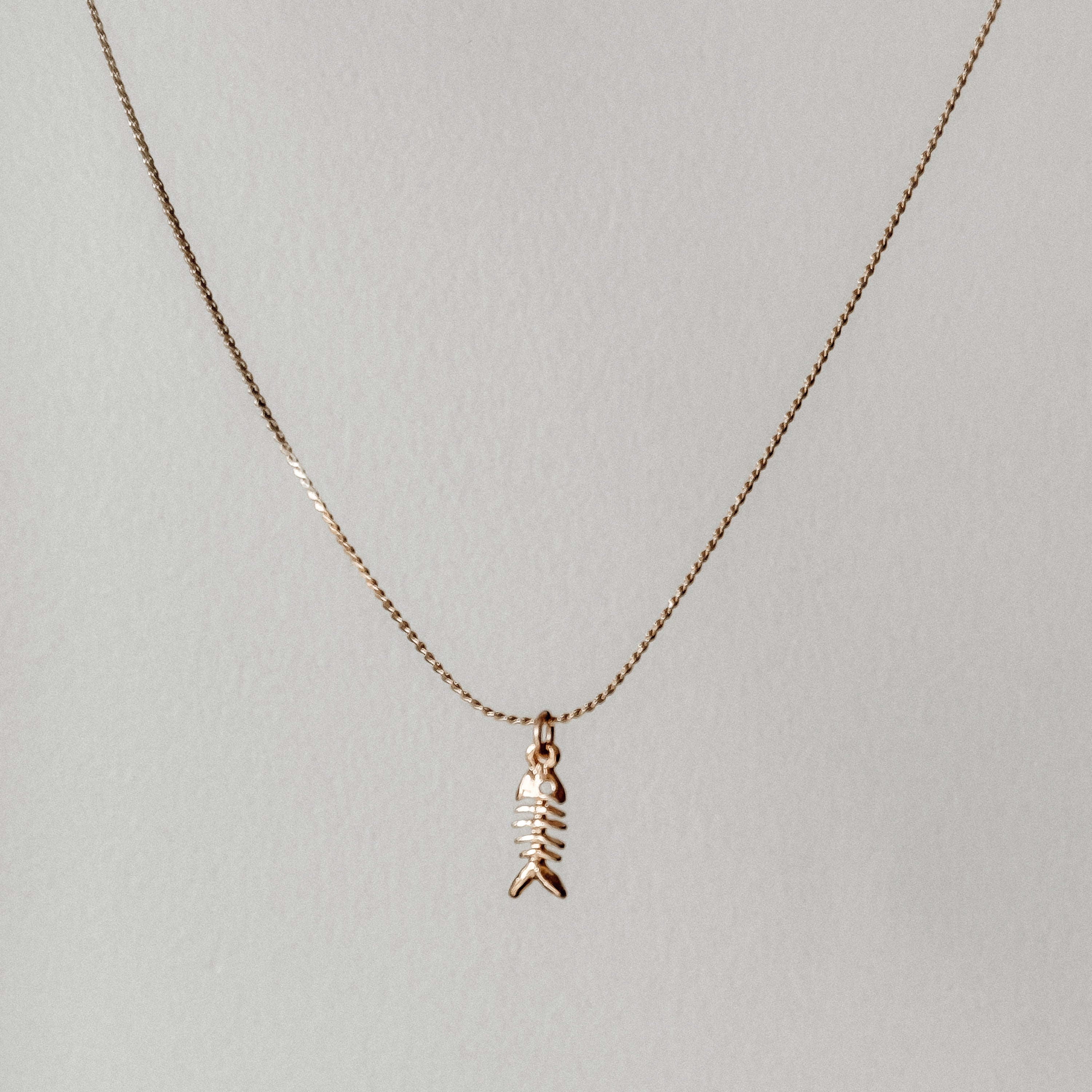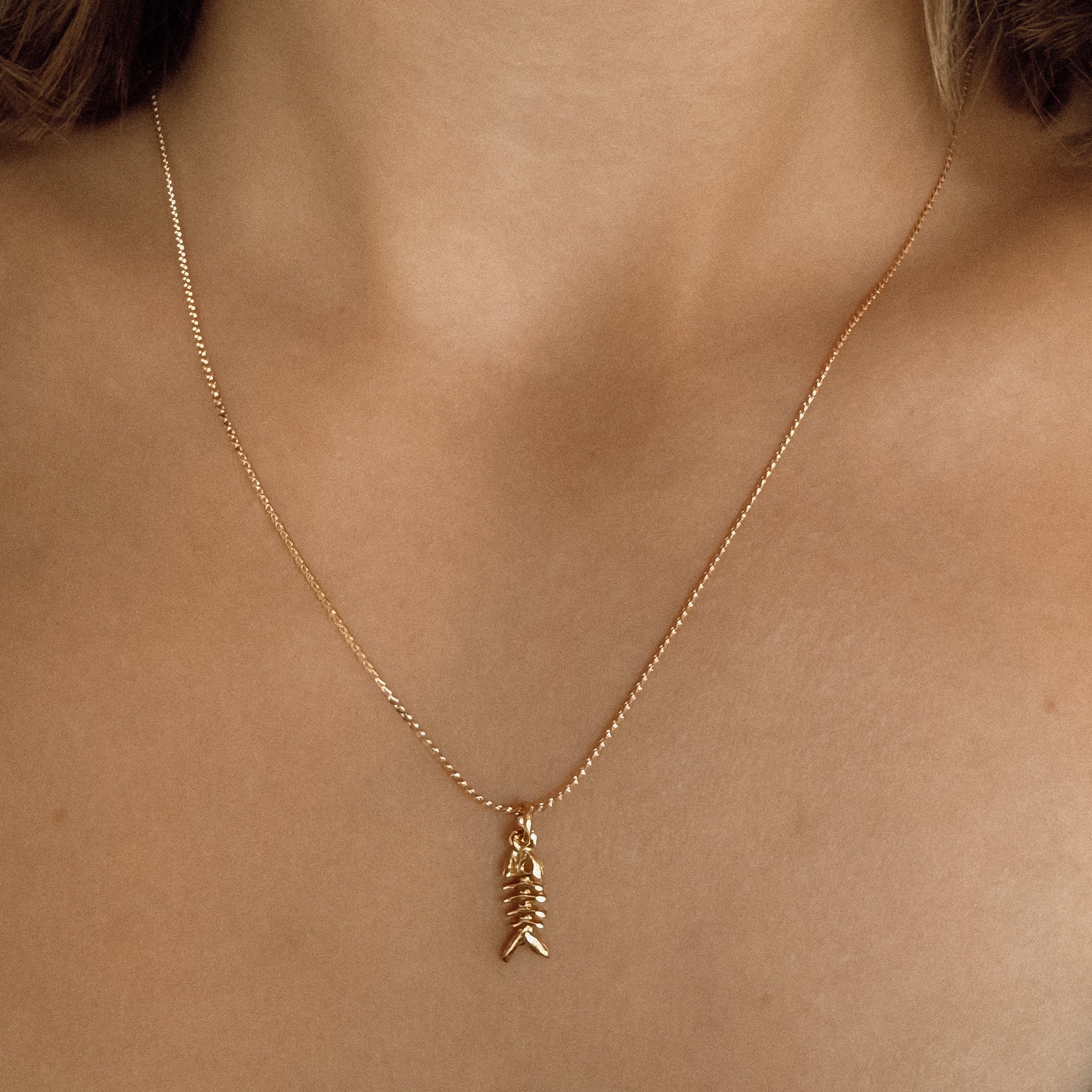 Bringing a playful touch to coastal inspiration, this necklace features a 22kt gold vermeil fishbone pendant hung from a 18kt gold-filled 16" chain.