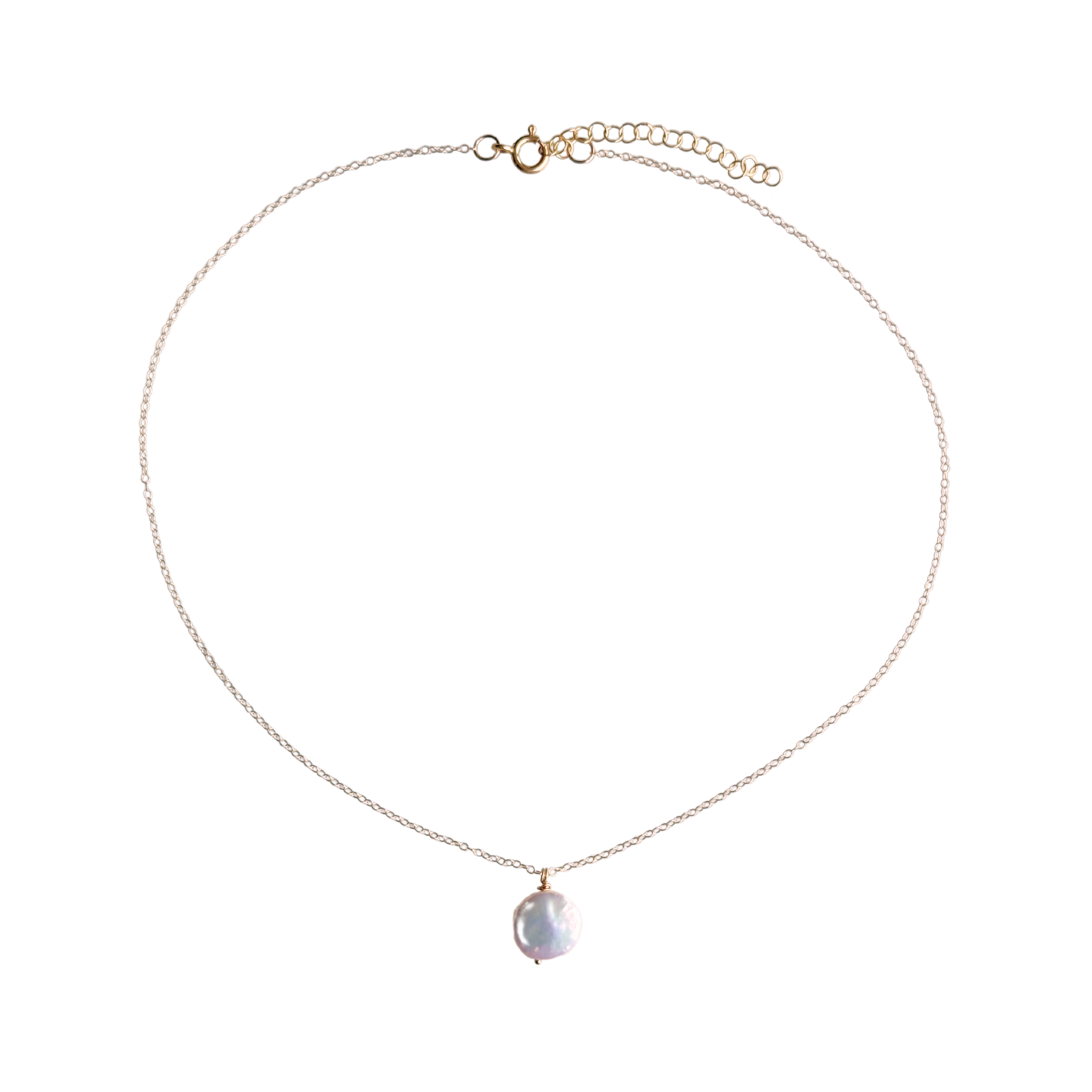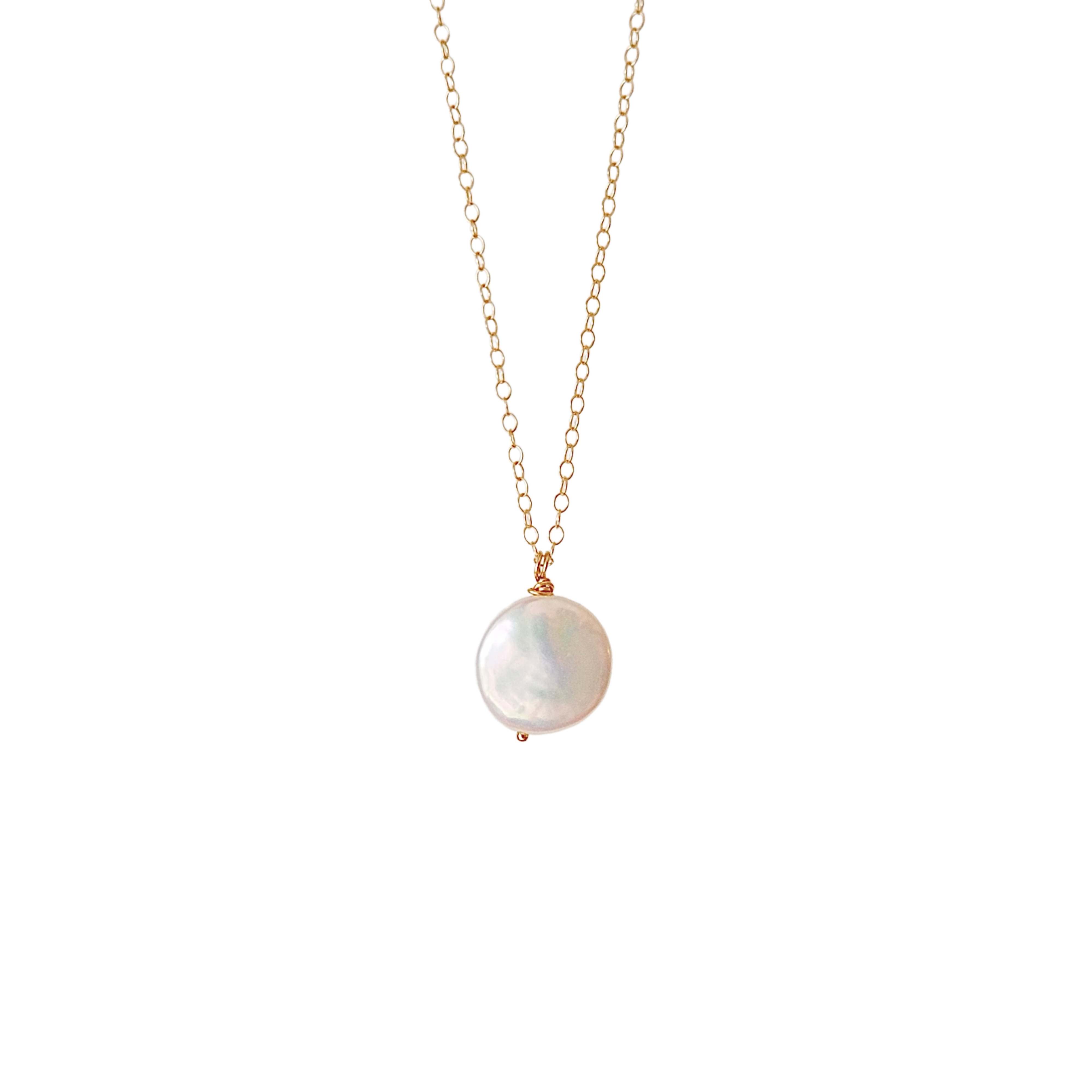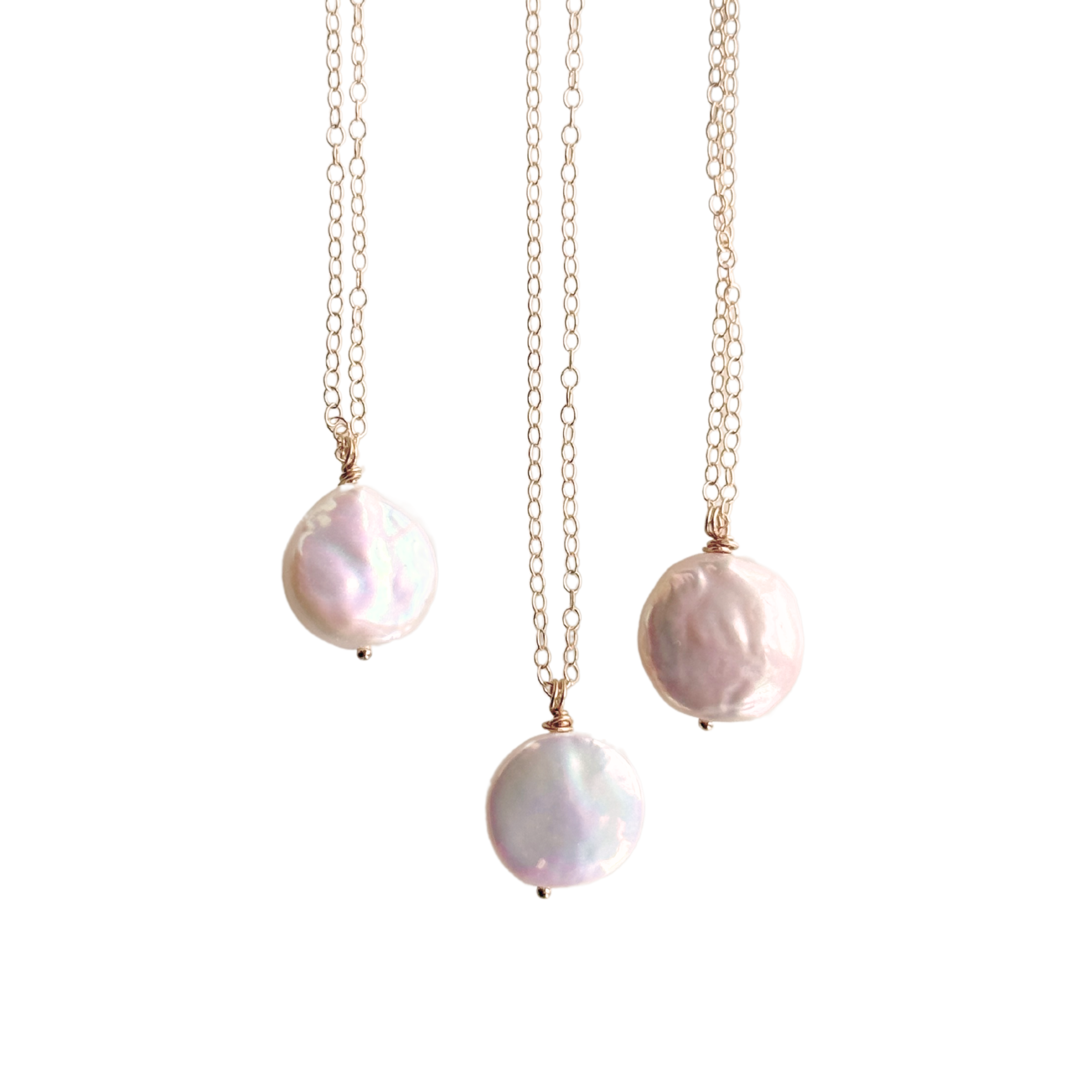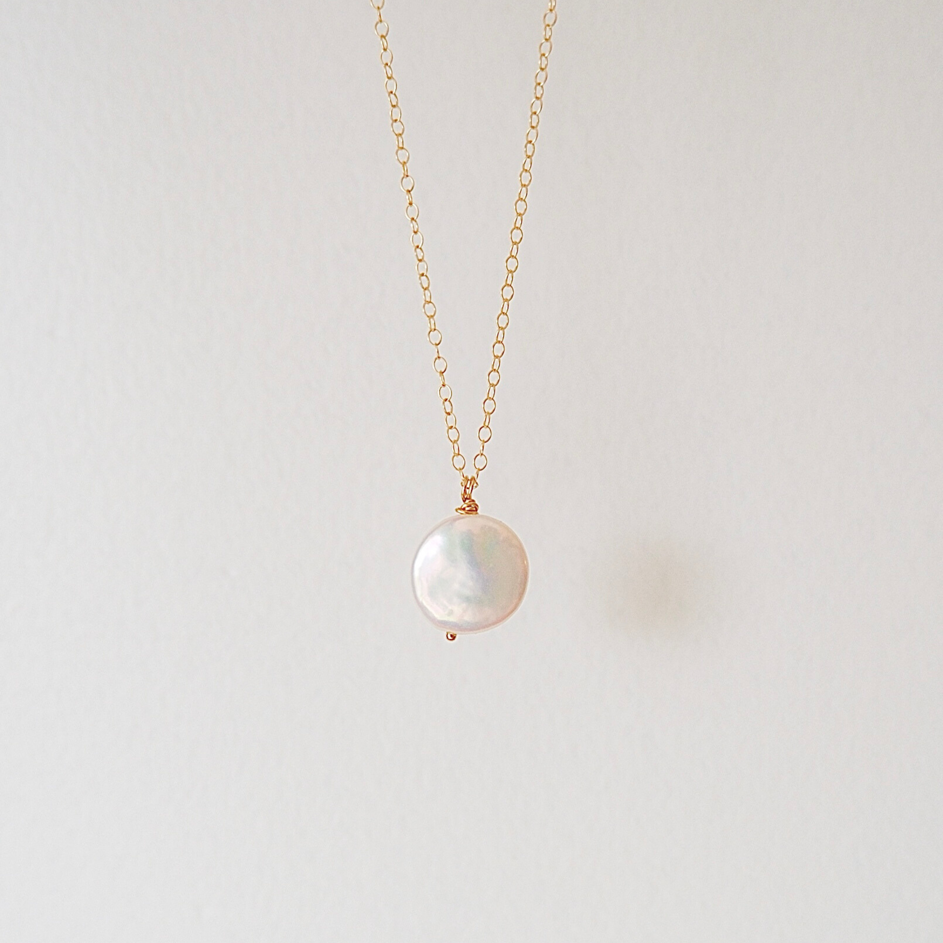 Every coin pearl is carefully hand-twisted into a pendant with gold-filled wire, strung onto 15" of chain with a 2" extender.