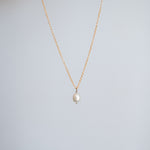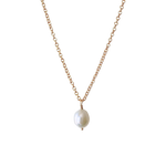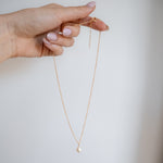 This dainty necklace features a stunning freshwater pearl hand-beaded onto a gold-filled chain. Each necklace is 16 inches long and has a 2-inch extender chain.