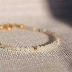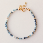 3-4mm gemstone beads add a pop of color and shimmer to your wrist; perfect for wearing solo or stacked.